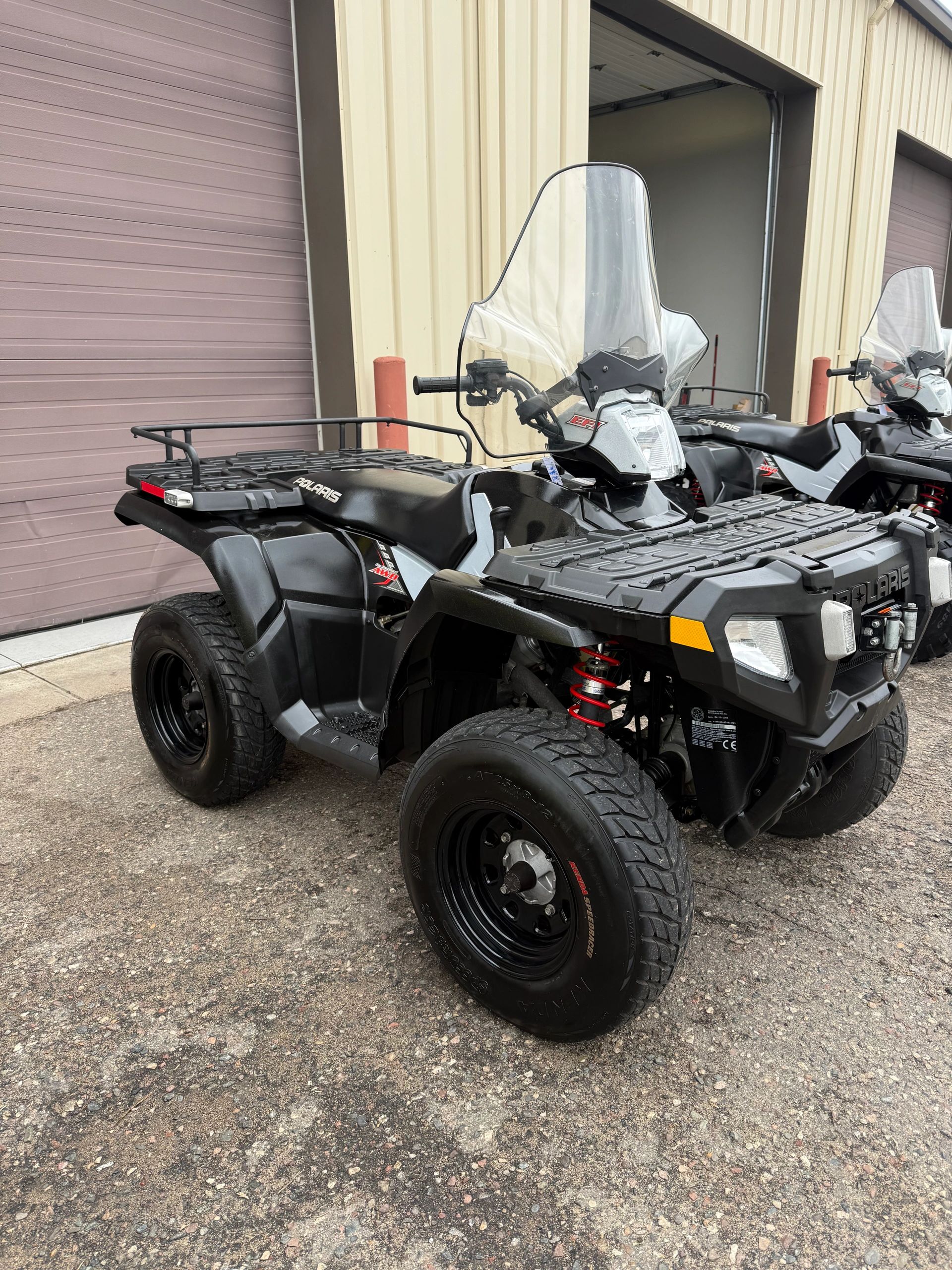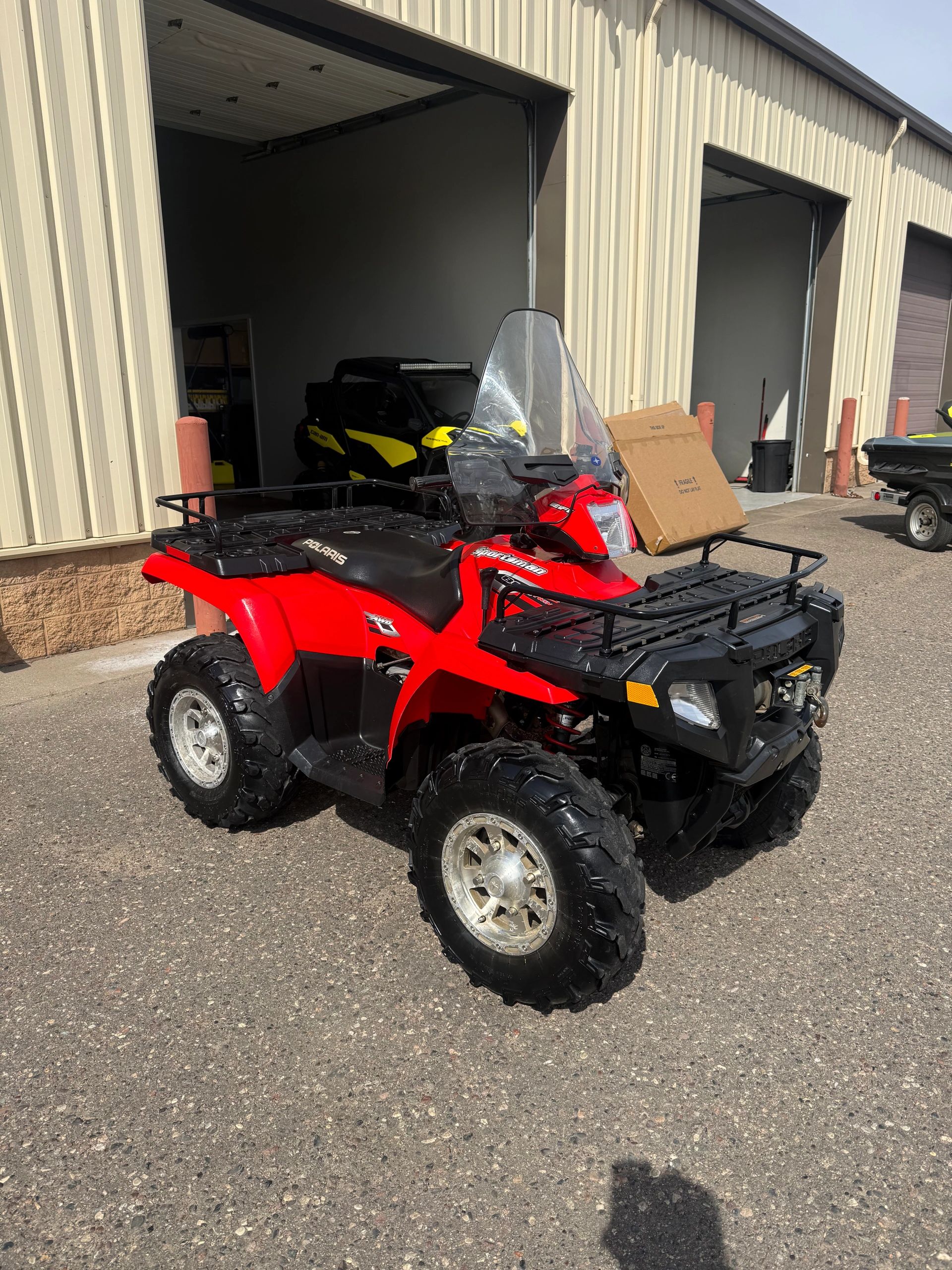 2005 Polaris Sportsman 700efi with a winch, windshield, front storage box, hand and thumb warmers, turn signals, red strobe lights, street tires and 2450 miles. Previously owned and used by the police department. Extremely clean atv. $3999