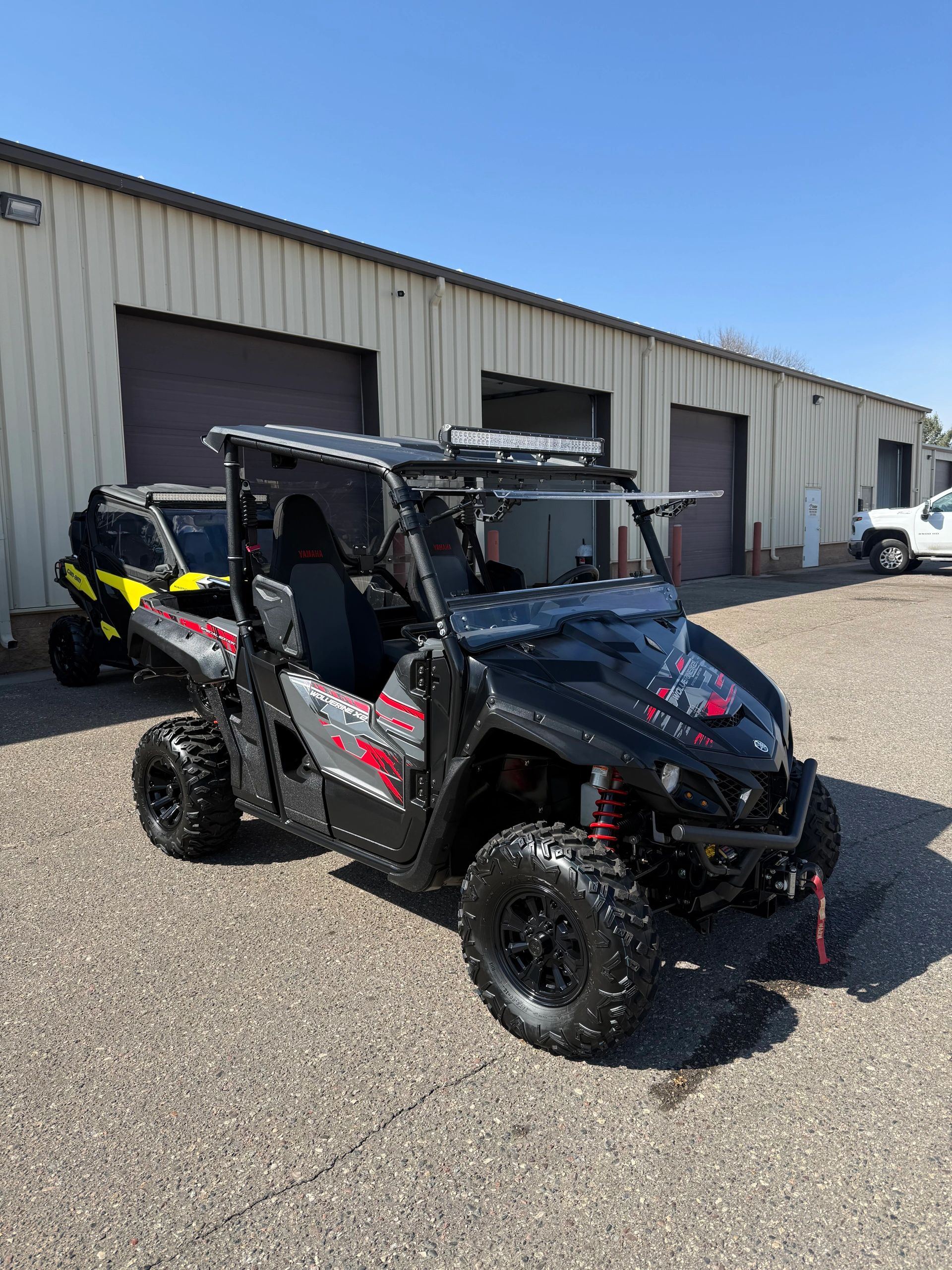 2019 Yamaha Wolverine 850 X2 Special Edition with power steering, roof, tip out windshield, turn signals, new wheels, winch, 2” receiver hitch front and rear, front and rear LED light bars and 4105 miles. $8499